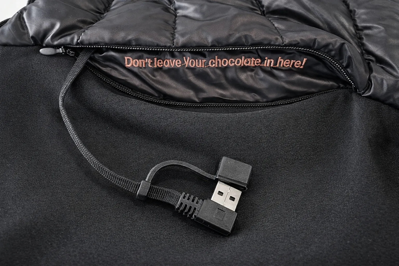 Den forsterkede USB-kabelen forhindrer brudd og sørger for at kroppsvarmeren din varer ekstra lenge.